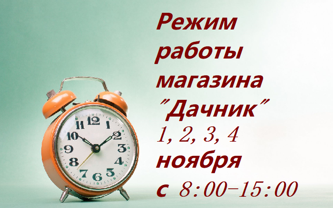 Магазин: Пн-Пт. 8:00-18:00, Сб-Вс 8:00-15:00, ул. Тойменка, 8А. "ДАЧНИК": Пн-Пт. 8:00-18:00, Сб Вс 8:00-15:00, ул. Куйбышева 1.