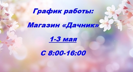 Магазин: Пн-Пт. 8:00-18:00, Сб-Вс 8:00-15:00, ул. Тойменка, 8А. "ДАЧНИК": Пн-Пт. 8:00-18:00, Сб Вс 8:00-15:00, ул. Куйбышева 1.